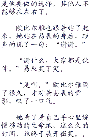 “那你还真是不走运啊,要是你先遇到我们的话,说不定就有另外的认识了,不过,现在也不迟,我们是一个很不错的团队哟。”易辰自信的看着眼前的人。