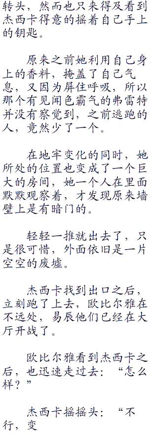 “就是说,这里的地牢虽然有四个入口,但实际上都是一个地方,他们可以像一个迷宫一样变换,可以将这里的人置换到另一个地方的意思。”易辰从楼上下来。