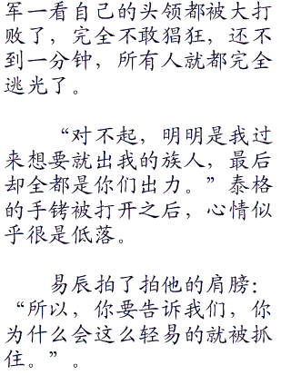 “很好,既然如此你们就不要怪我不客气了。”萨蒂也说着,将泰格交给手下的人。