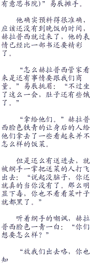 “我倒是想问问这位管家大人,你什么时候对我们有过情面?”易辰背靠着海楼石的栏杆,完全没有一点囚犯的自觉。