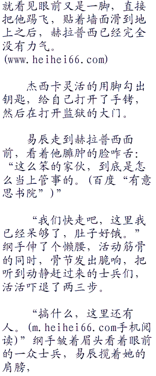 “哼,你们不要太得意。”说着赫拉普西小心翼翼的打开监狱的门,仅仅是开了一个小缝,然后一把将杰西卡扯出去之后,立刻就把门关上。