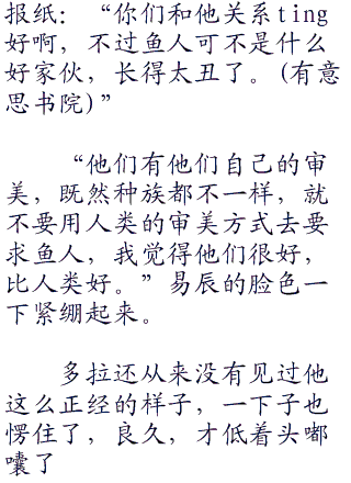 “你们跟那个鱼人关系很好啊?”多拉突然出声,这时候所有人才发现她原来还在,看到他们意外的神色,多拉一跺