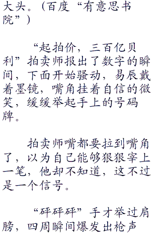 拍卖已经开始了,对于前面四件看起来很珍贵的摆件和徽章,完全不感兴趣,易辰卯足了劲装逼,完全把自己想成了黑道大佬。