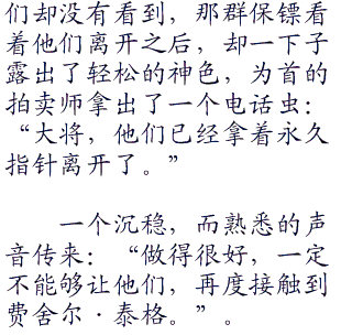 “那么接下来就是我们最后一件拍卖品,这是一个永久记录指针”拍卖师十分卖力的介绍到,然而下面的人却并没有什么兴趣的样子。