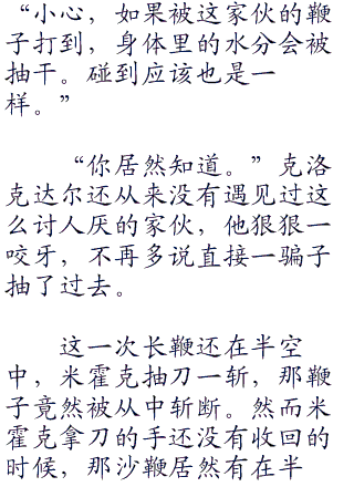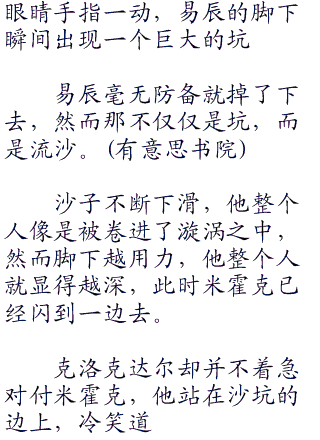 就是这样过了没有多久,他们眼前出现了一间屋子,用沙做成的屋子,不仅仅是房子是用沙做成的,一应家具,甚至其中晒衣服的栏杆之类,竟然都是用沙子做成的。
