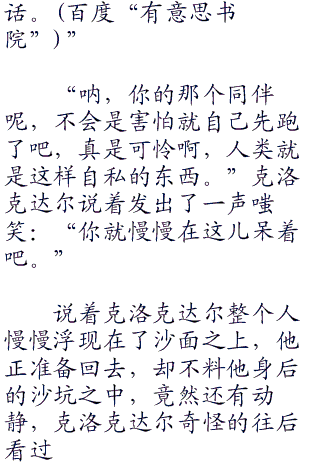 之前的狂风已经停了下来,微风轻轻拂过面颊,空气中只有干燥,让人有些心烦,既在这个时候,他的身后突然出现流沙