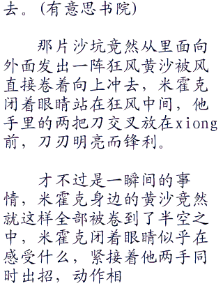 米霍克心头一惊,这样大面积流动的黄沙,根本而不可能站稳。