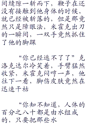 米霍克只能够踩着刀柄跳起,连连后退,然而那沙鞭就像是张了眼睛一样紧追不放,克洛克达尔整个人被埋在沙子里面根本看不到他在什么地方。