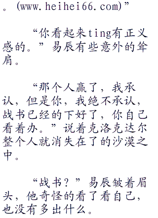 “真是厉害啊。”易辰终于出现了,在绿洲那一边,米霍克面无表情,只是在与易辰擦肩而过的瞬间,轻描淡写的说了一句:“谢了。”