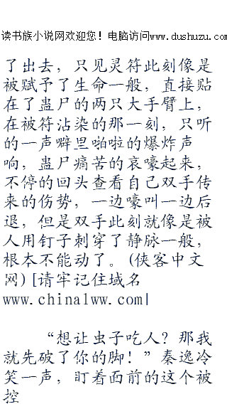 被这蛊尸放开了,秦逸当即纵身跃起,一脚踢中了那尸体的匈口,将他踹飞了出去,同时,右手食中二指和气,在他沾满血迹的脸上飞快的写着灵符上的字眼,但见几番挥舞过后,那蛊尸的正脸上突然冒出一道金光,而那金光正是道家符咒。