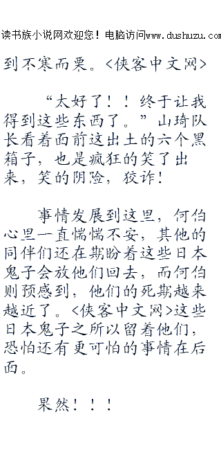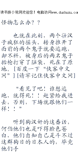 ;;;;众人明白过来,想必蛋子是想趁机逃跑,结果被守卫的鬼子给发现了,所以一枪嘣了他。众汉子纷纷叹息,各自躺了下来,这些鬼子杀人如麻,看来他们是很难逃回去了。