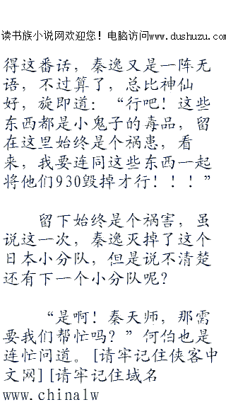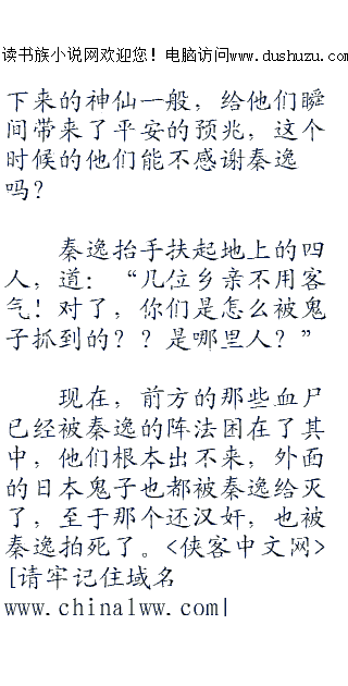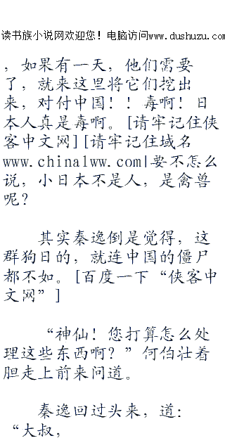 ;;;;何伯等人看到刚刚的一幕,也是对秦逸敬佩的五体投地!!神人啊,这真的是神人啊,不仅仅从小鬼子的机枪下救了他们这一群人,而且还把汉奸给杀了!!!将他们从这群怪物的嘴下救出来,这是何等的本事?且不说别的,就说秦逸刚刚那不避不闪,躲避子弹的能力,谁行?恐怕是再厉害的高手,古代的武林高手也不行吧?