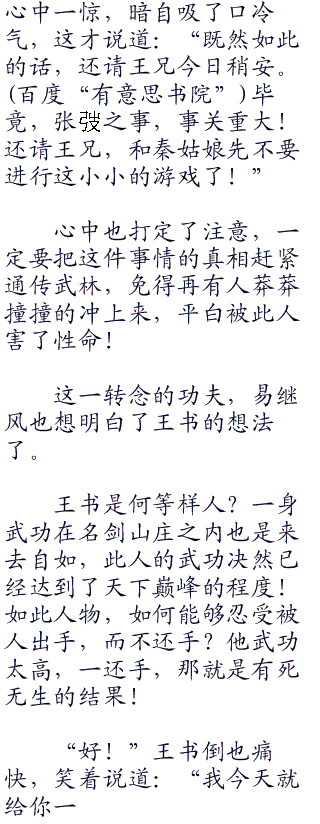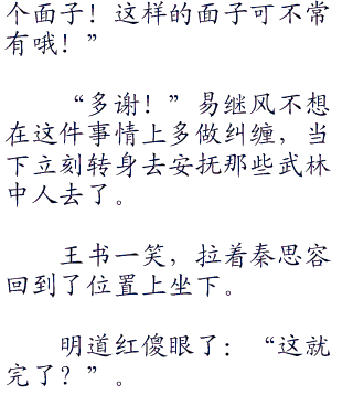 一众武林众人此时正抓瞎呢,忽然看到又站出来一个人,以为王书还得开杀。结果转头一看,是易继风,当下立刻就好像是找到了主心骨一样!齐刷刷的给易继风,让出了一个位置。