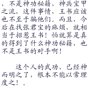 “等等等等!”王书伸出手来说道:“这话先慢慢说,你刚才出来的时候说过,我的一面之词,不足为信,你的意思是什么?你是想说,张君宝得到的东西,是说神兵宝甲,武功秘籍?”