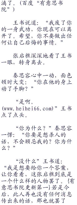 “我帮你解决了这件事情!”王书说着来到跟前,内力一转之间,就在张启樵的身体之中转了个圈,张启樵一声惨叫,回过神来的时候,脑门上已经冷汗淋