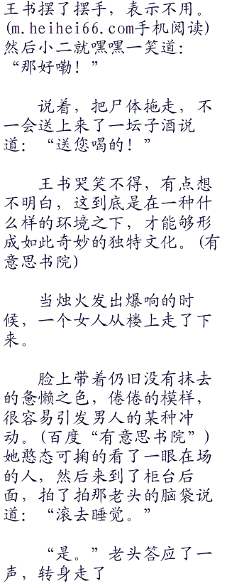 王书伸手一抓,就把刀子拿到了手里,反手就把人给拍死了。不过他没有去拿走那人身上的财物,大概等了一盏茶的功夫,小二过来问了一句:“您不捡捡?”