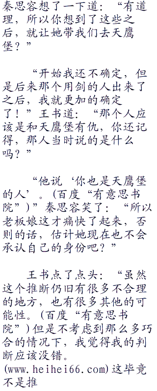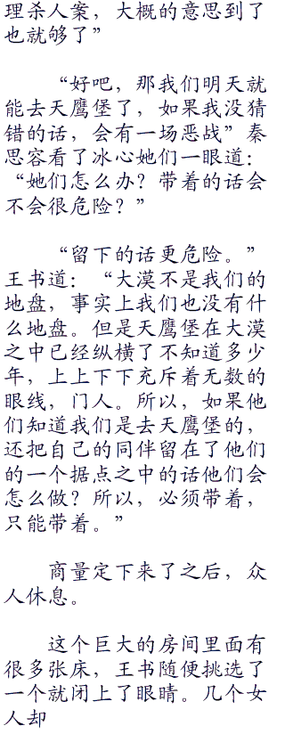 老板娘的话戛然而止,王书的眼神却也渐渐地恢复了平常,他笑着说道:“如果没有事的话,那么,在下等人先回去休息了。明天见