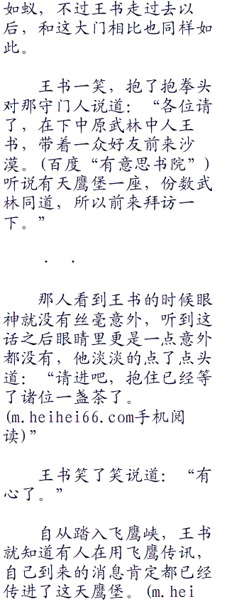 天鹰堡的所在其实并不隐秘,事实上如果是在大漠上混的人,估计怎么都会知道天鹰堡在什么地方。