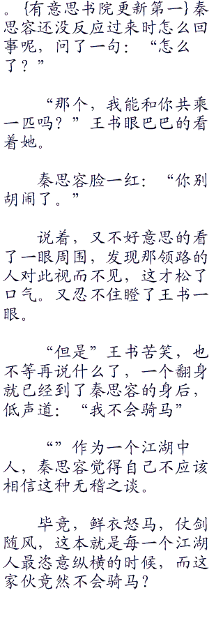 “你倒是不担心了。”秦思容白了王书一眼,这人的武功,确实是可以不用担心这天底下绝大部分的危险。