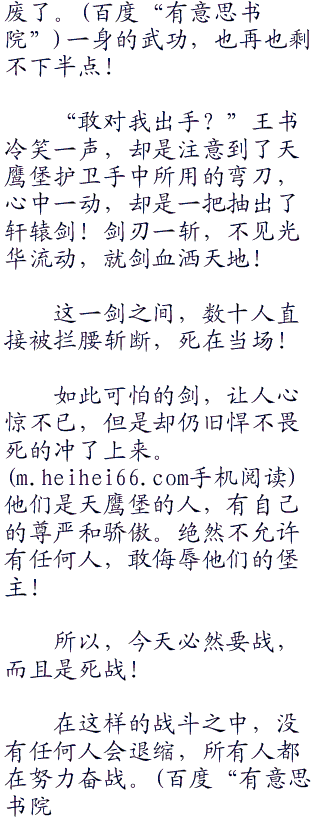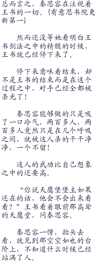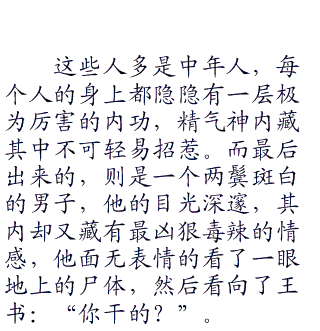 王书哼了一声,道:“走,进去,见识见识这位天鹰堡主到底是个什么人物,教导出来的这些都叫个什么玩意”