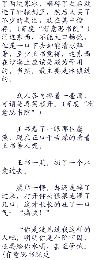 “什么是凉的?”沙漠上的一切都是热的,现在有凉的,如何能够不让人眼前一亮?