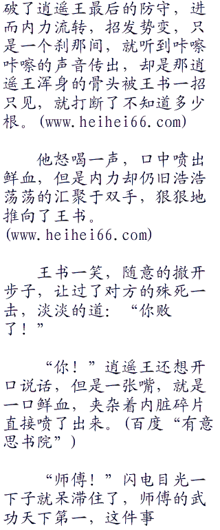 逍遥王目光一凝,怒气更胜,王书这出招草率,实在不是一个武人在和高手对战的时候,应该使用的手段。
