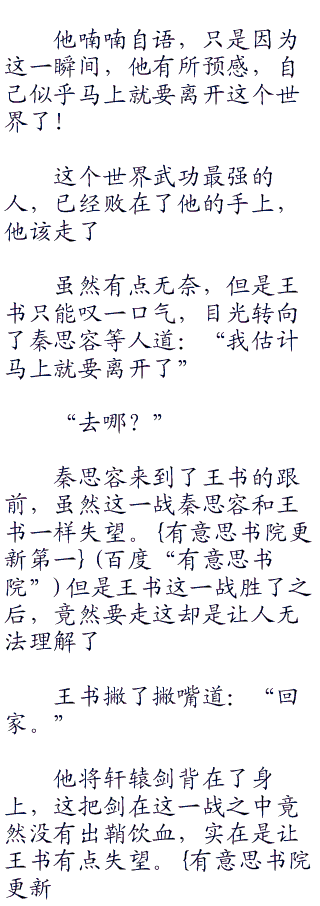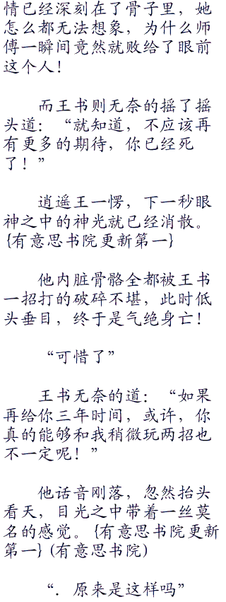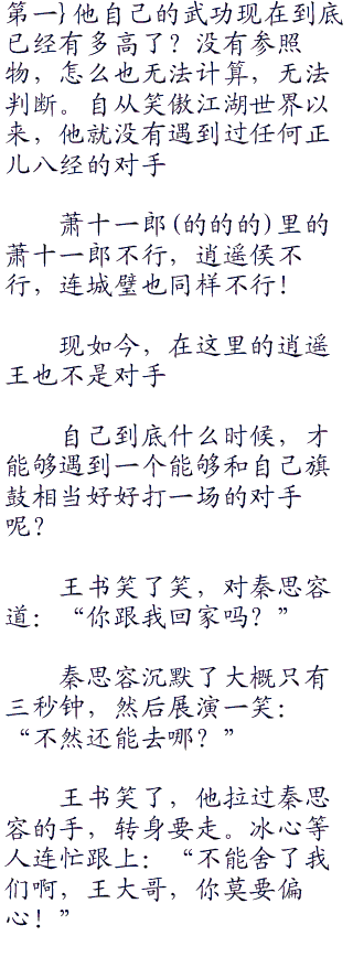 逍遥王也转过身,看着王书,面色惊疑不定,这一番交手,虽然没有彼此真的切磋出什么,但是王书的武功之高,已经可见一斑!当下再不敢怠慢,知道这少年纵然神思不属,一脸无所谓的模样,但是一身武功却足够令人尊敬。