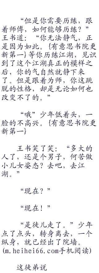“嘿嘿。”少年一笑道:“师傅,您知道我年纪还小嘛,如果现在就天天静气,那以后的日子还怎么过啊?”