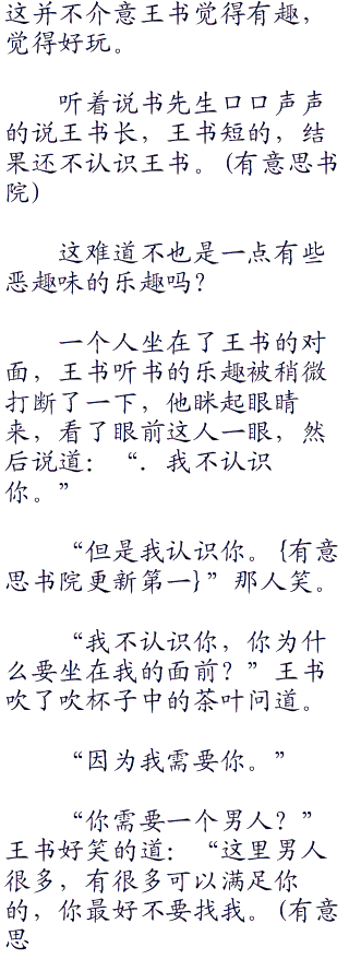 “或许吧!”王书笑了笑道:“其实我并不介意你曾经到底是谁的女人,也并不介意你是否阴狠毒辣。我唯一在意的是,你是否真的爱上了我?”