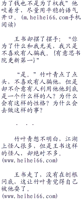 竹叶青不说话了,他的腰也直了起来,直勾勾的看着王书。