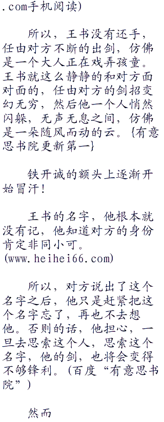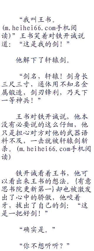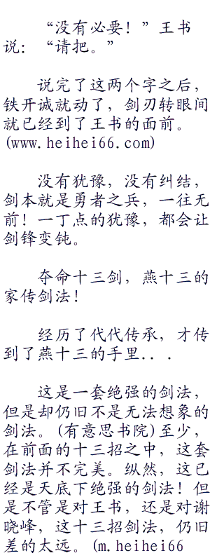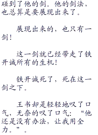 “我了解你,比你想象的还多。”王书说:“但是你从来都不了解我,你也从来都没有见过我的剑。”