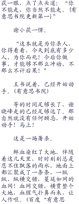 王书的剑已经收了回来,他的目光平静如水,看着谢晓峰。