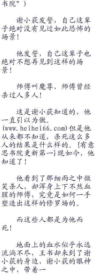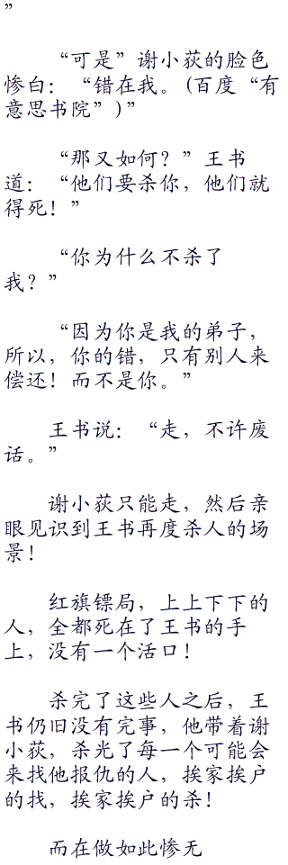 “为什么?”谢晓峰问,王书这么大的名头,这么高的武功,这么小的年龄。可见他的天资到底有多么厉害,多么可怕。这么厉害,这么可怕的人,为什么还不会夺命十三剑的第十五剑?按照他的资质,他必然可以研究出这第十五剑的!