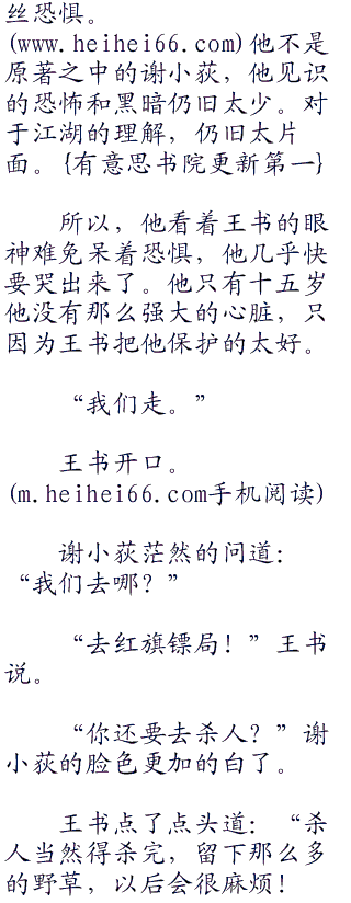 所以,他只能走,必须走,走得越快越好!最好一声惨叫都听不到,完全不知道红旗镖局死了多少人,这样才好!