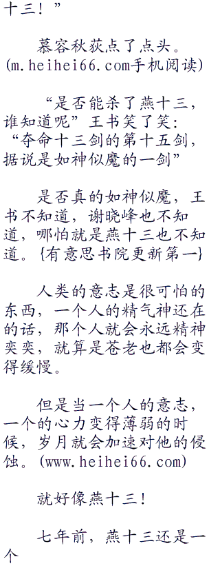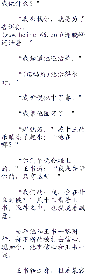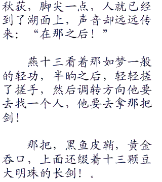 “燕十三能够救谢晓峰。”慕容秋荻对王书说:“你为什么还要亲自动手?”