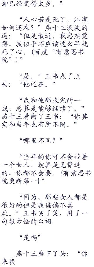 “因为燕十三救了谢晓峰,死的便是燕十三。”王书说。