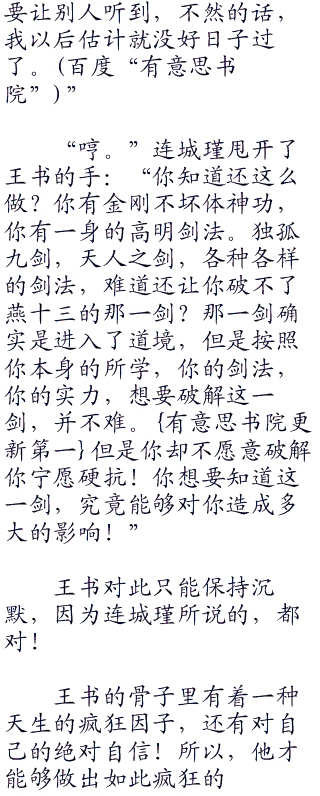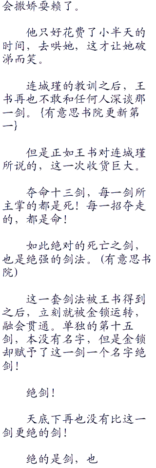 “见识了一下天下无敌的剑法,无论如何,都值得赞叹一番。”王书笑。