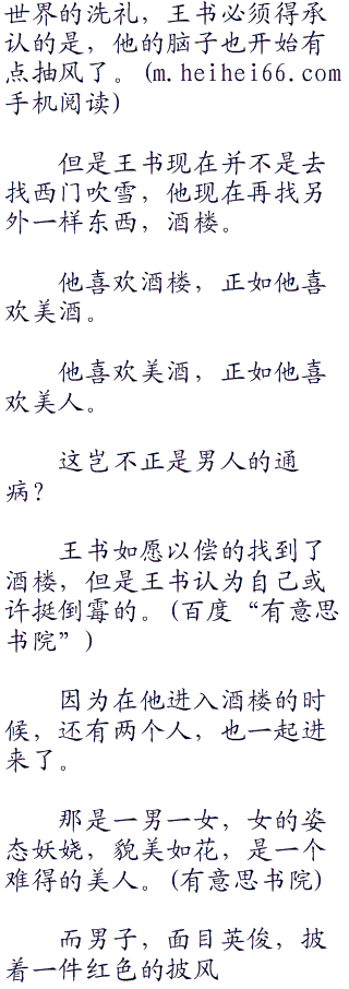 王书对熊姥姥不感兴趣,虽然他知道那是个美人。是个天底下绝美的美人,一个很少见的美人。但是他不感兴趣,至少现在不敢兴趣。