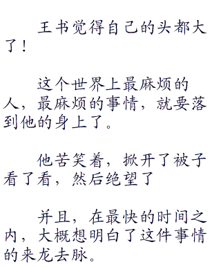 所以,王书只好出去。他走了出去,月光洒在身上,仿佛是披上了一层朦胧的纱。