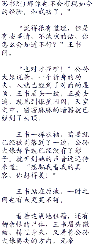 或许到死他都没有想到,王书出手竟然这么快,竟然这么干脆利落。他甚至没有用剑,然后他就死了。