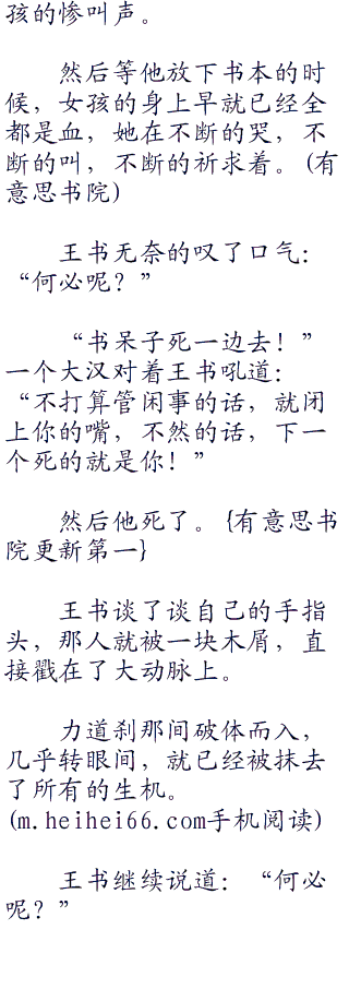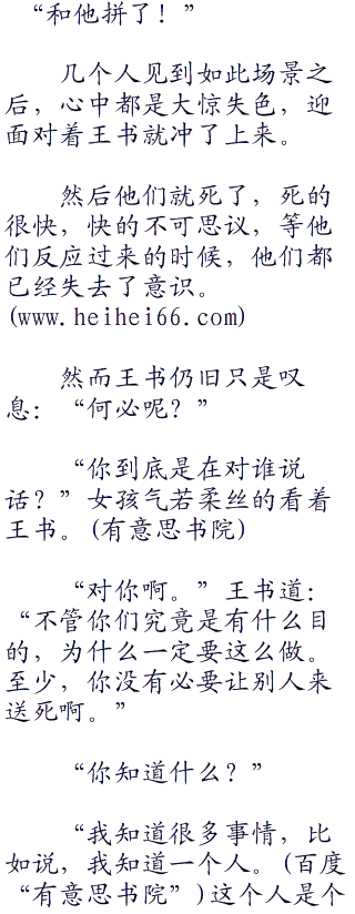王书认真的看着女孩,然后笑着,他笑的很开心,也很自然,然后他很自然的说:“不行!”