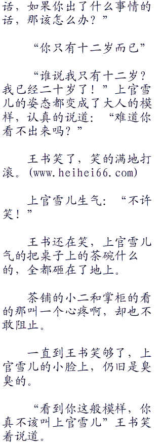王书说的一听就知道是假话,别的十二岁的少女也能分清楚这一点,更何况是上官雪儿。分清楚这一点之后别的少女可能只是一笑置之,但是上官雪儿却是哇的一声就给哭了出来。
