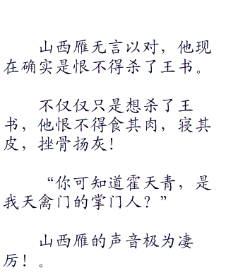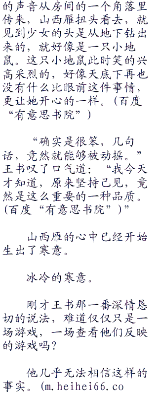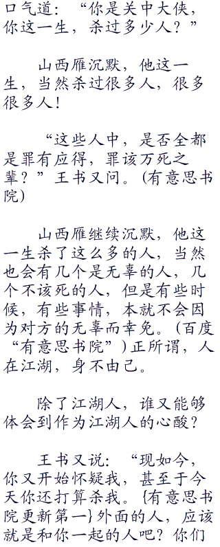 山西雁只能沉默,因为他发现,自己竟然不知道应该说点什么才能够反驳王书的话。
