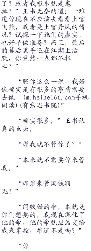 “你猜我会不会就是上官飞燕的那个情人呢?”王书笑着说道。