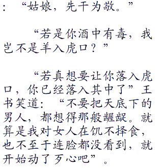 “你当然不可能,你是个太监。”王书笑道:“我看你,是因为我今天找你有事。”