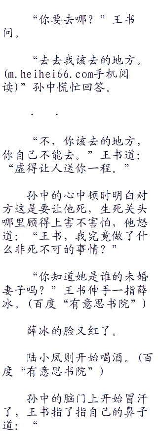 孙中又扭头看着薛冰:“你带来的这个小姑娘真标志,就好像是水仙花一样,一捏都能捏出水来。老弟,你有办法,如果你把这个姑娘让给我的话,今后你在江湖中出了什么事,尽管找我姓孙的!”