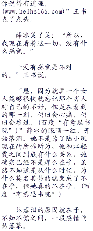 “啊!”薛冰明白了,脸色微微一红,然后歪着头看着王书:“你好坏。”