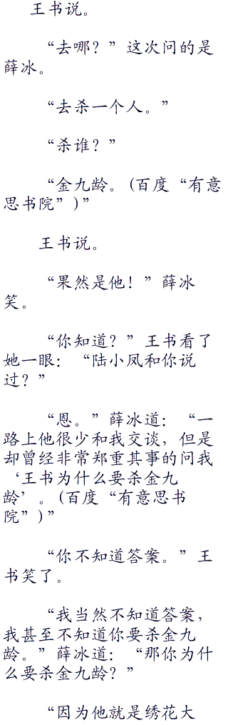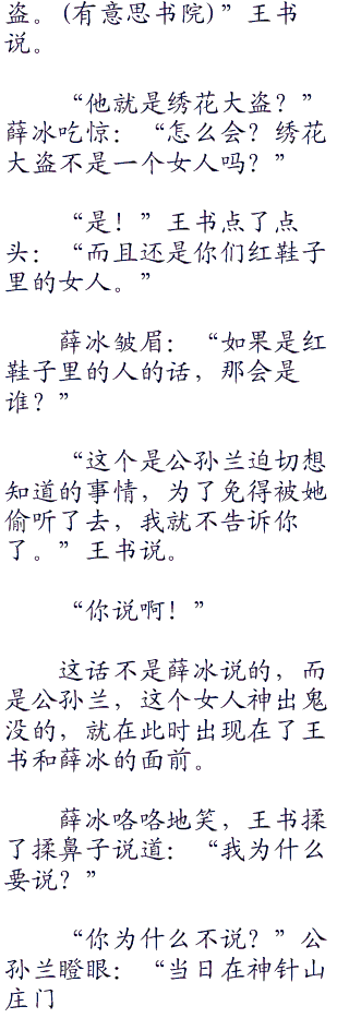 “那东西对我来说,毫无意义。”王书拉过了薛冰的手:“还有,为这个案子烦心的是陆小凤,不是你。”