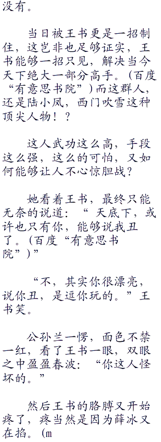 公孙兰当然无法把王书怎么样,如果她能把王书怎么样的话,她早就已经把王书怎么样了,又怎么会等到现在。