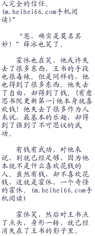 “是,他很多东西都没了。”王书说道:“包括作为男人基本的能力,然而事实上他本来就已经很老,一辈子修炼的还是童子功,所以,那东西或者无,对他来说意义不大。”